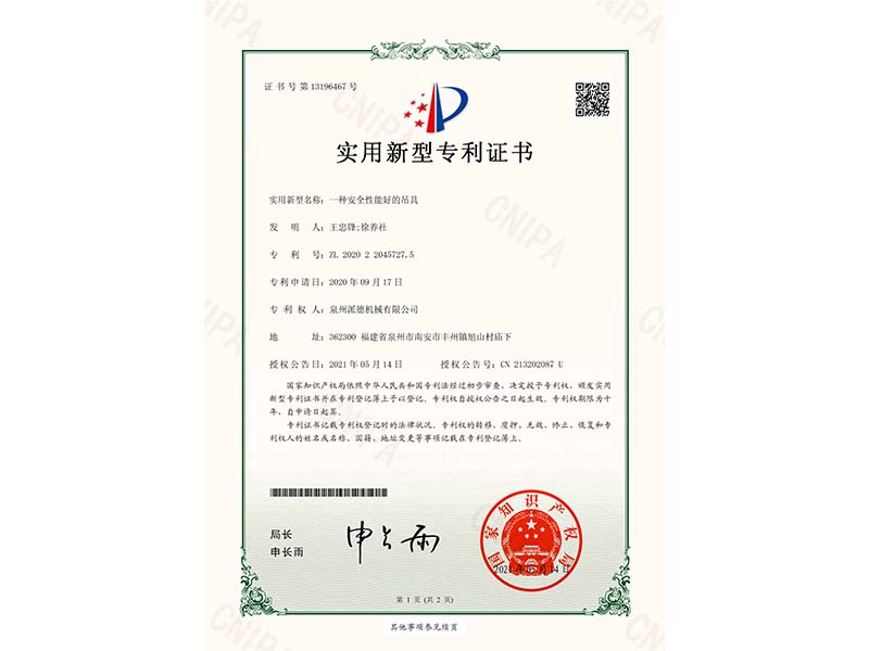 Utility model patent certificate (a new type of steel wire rope guide device)